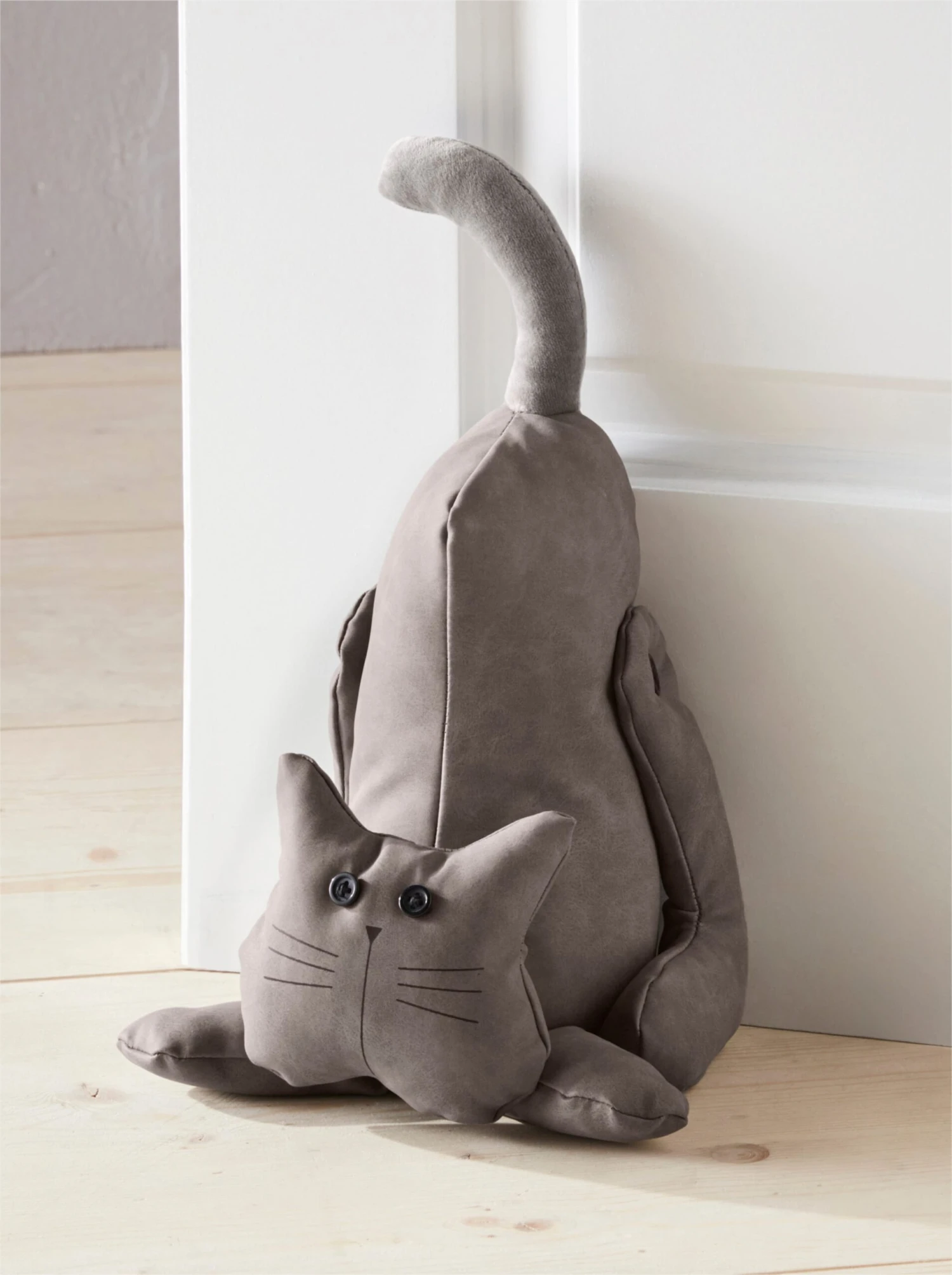 Türstopper Katze aus Kunstleder. Zur Beschwerung mit Sand gefüllt.