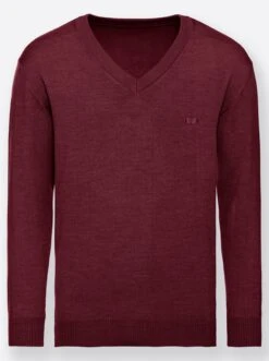 V-Pullover mit Rippenstrick am V-Ausschnitt, an den Ärmeln und am Saum. Edler Feinstrick in Merino-Qualität.
