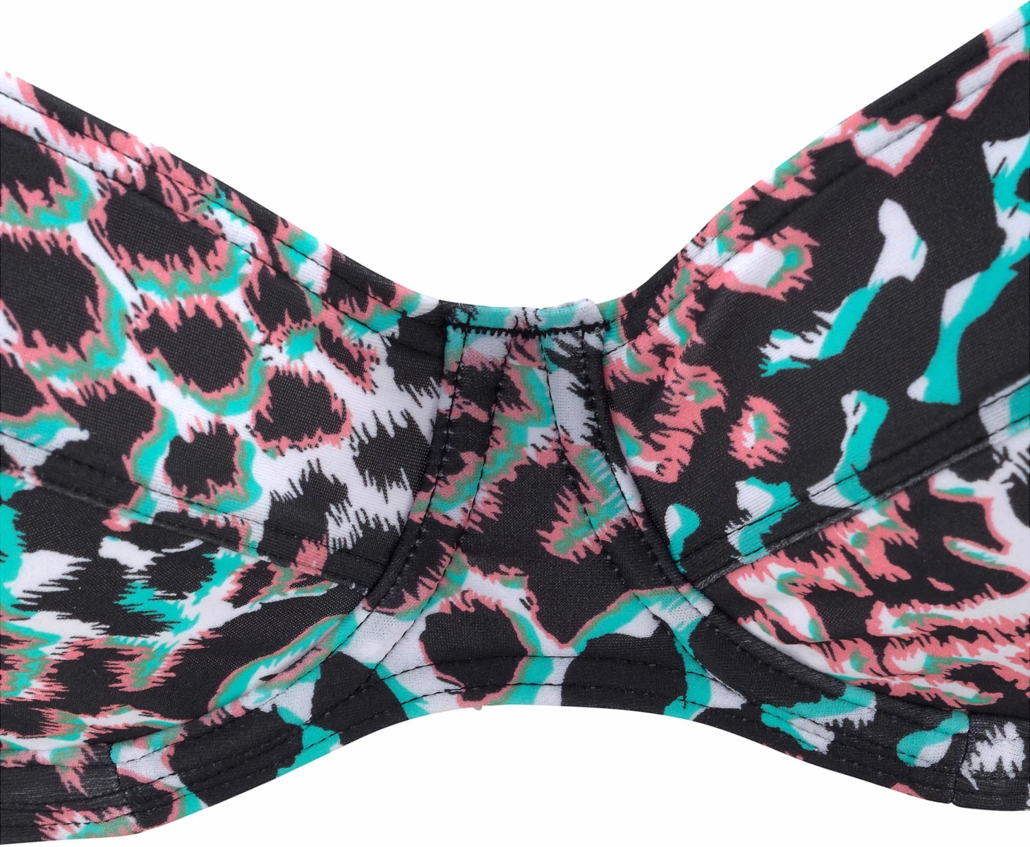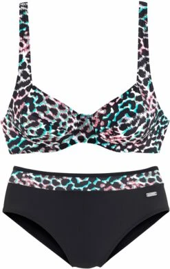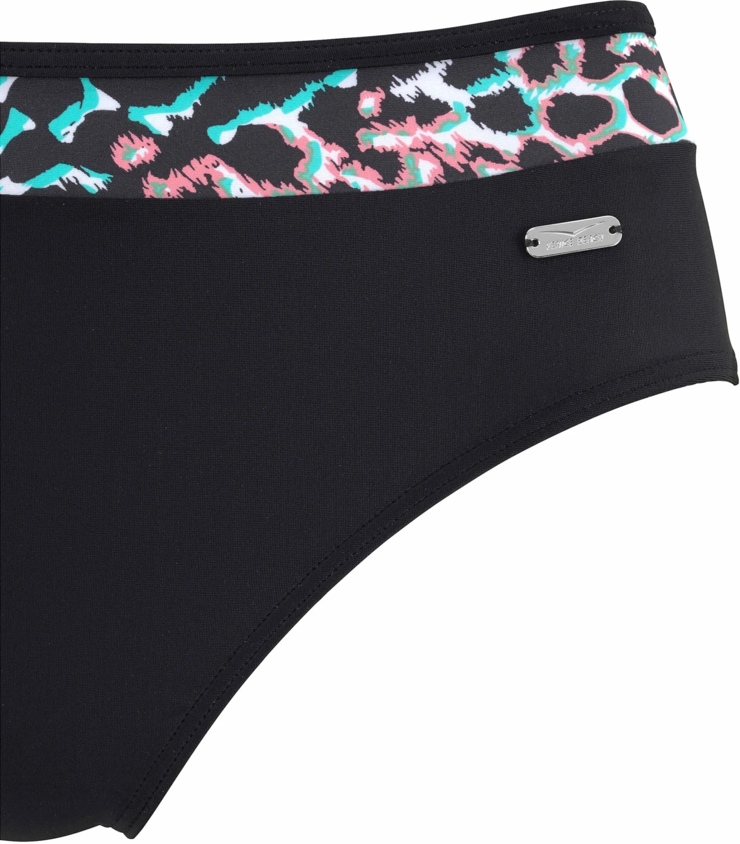 Im tollen Look in Schwarz Kombiniert mit bunten Leodruck. Top mit verstellbaren Trägern. Etwas höher geschnittene Hose mit bedrucktem Einsatz am Bündchen. Miederverstärkung im seitlichen Flügel.