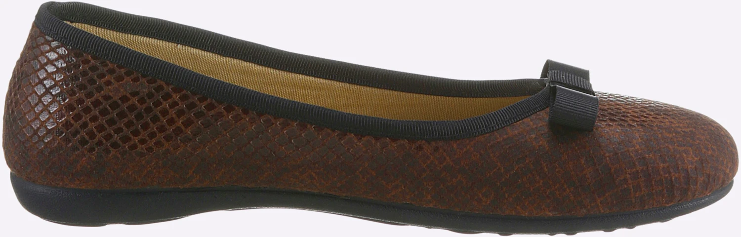 Ein toller Blickfang! Der Hausschuh von Waldläufer zeigt sich mit edler Kroko-Prägung. Bequeme Ballerina-Form mit textilem Obermaterial sowie weicher Textil-Innenausstattung. Federleicht. Flexible Gummi-Laufsohle. Weite G.