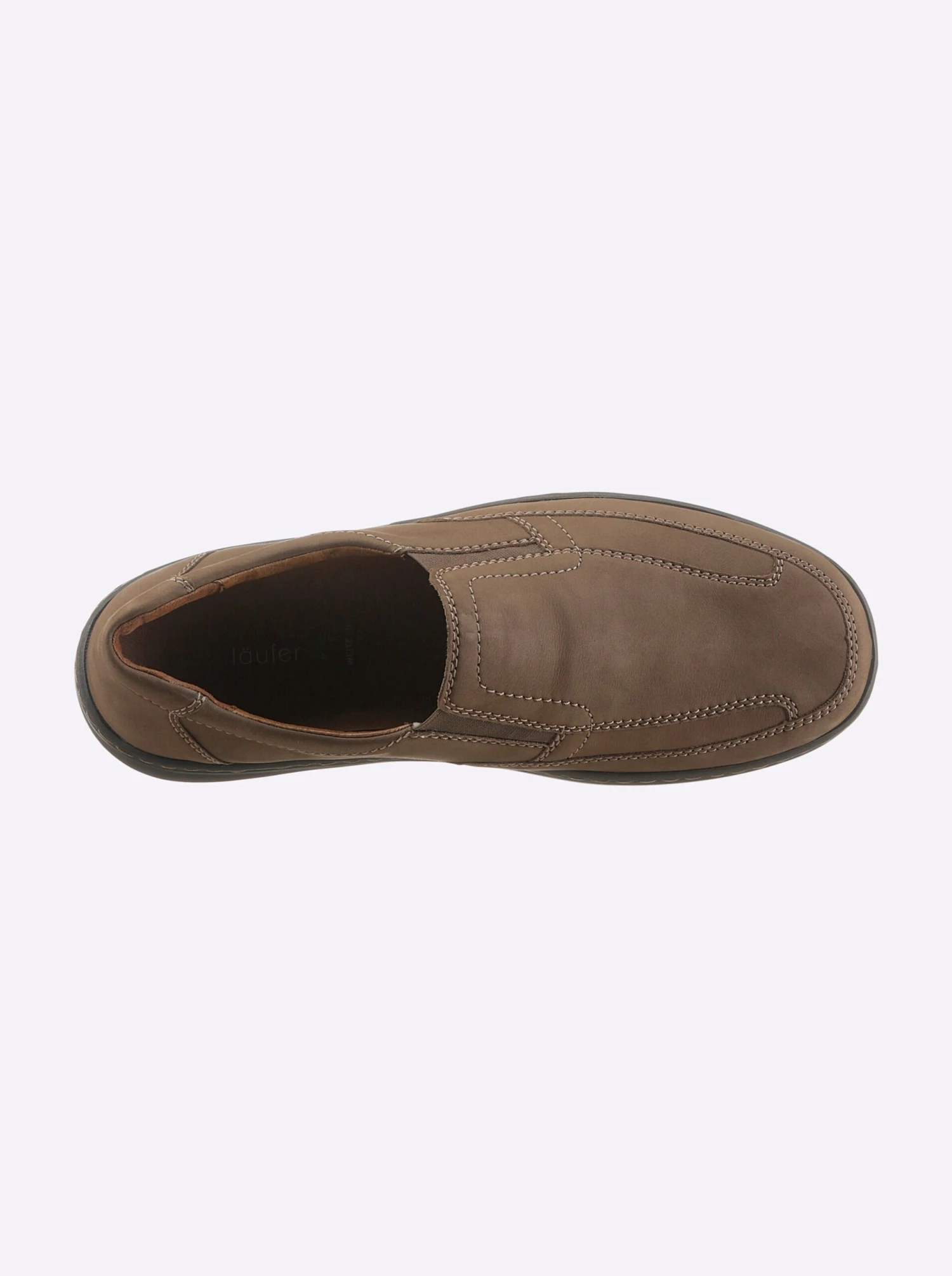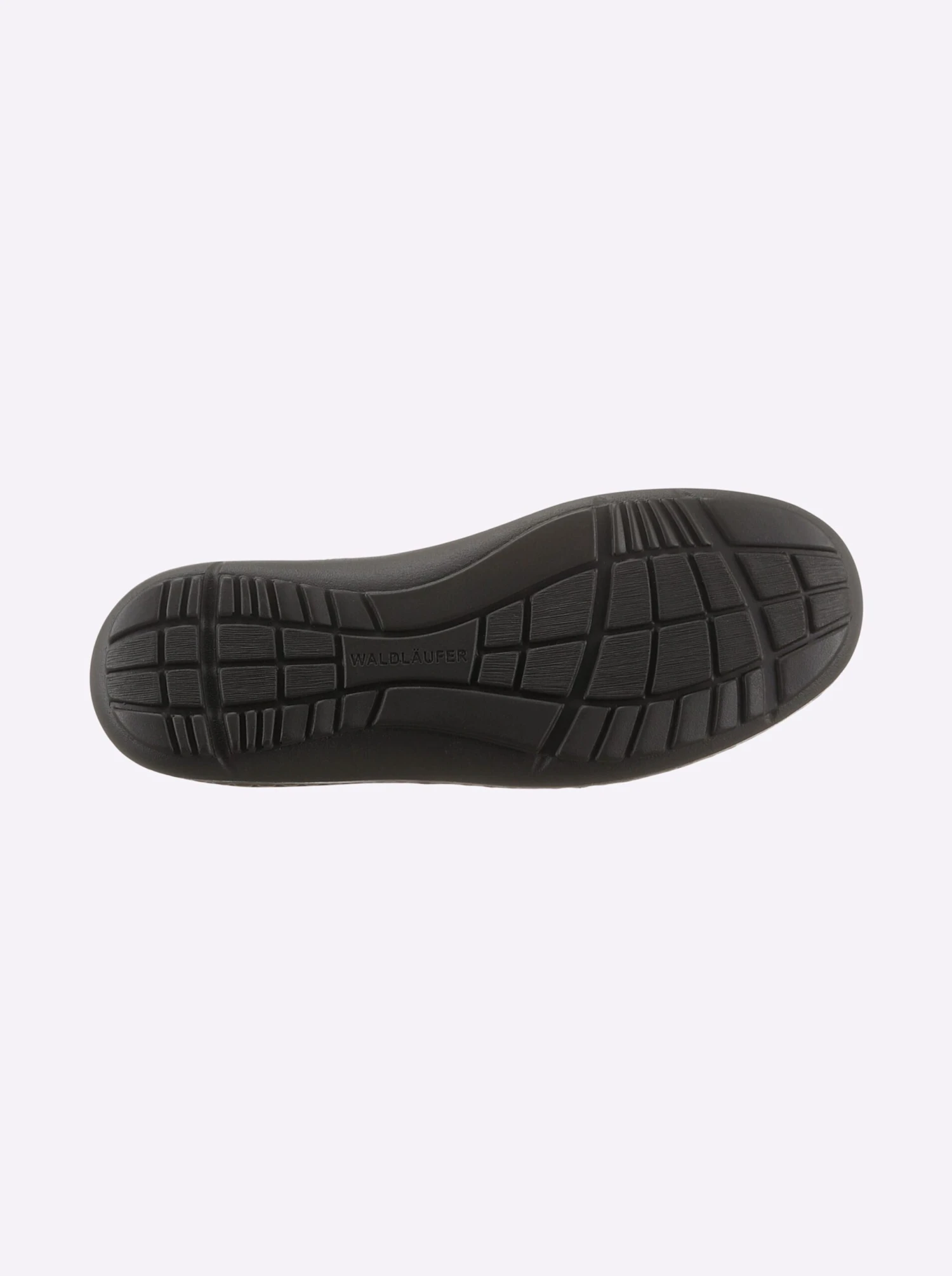 Von Waldläufer: Slipper. Farbe Schwarz aus Glattleder, Farbe Schlamm aus Veloursleder. Extra gepolstertes Leder-Wechselfußbett – für eigene Einlagen geeignet. Innenfutter: Leder und Textil. Rutschhemmende PU-Laufsohle mit ca. 15 mm Absatz. Weite H.