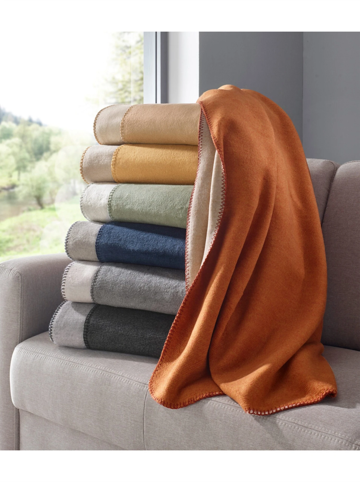 Wohndecke von Biederlack in Wende-Optik. Besonders hautsympathisch mit Baumwolle. Zierstich-Einfassung. Pflegeleichte Qualität.